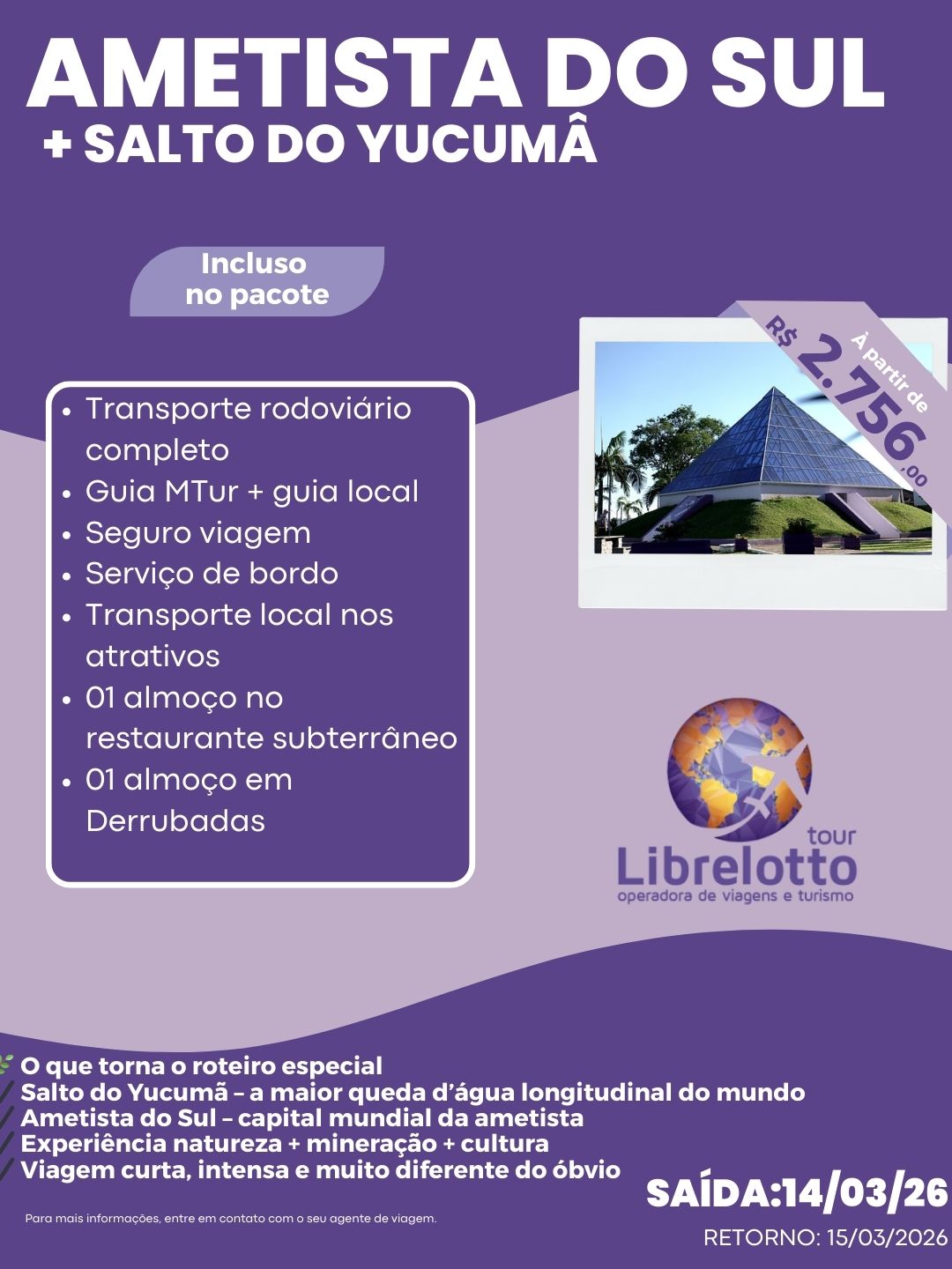 A Operadora Librelotto Tour atua na área de turismo desde 2010, iniciando as atividades como Agência de Viagens.